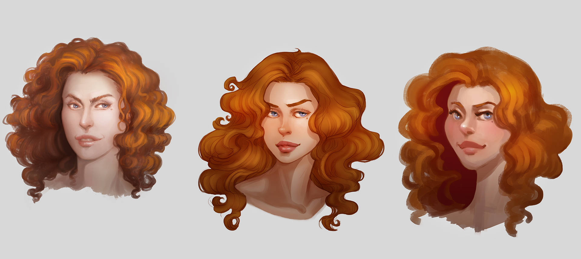 8. Gradients and shadows – Then I just keep pushing the shadows a bit more, especially by adding that big one under her neck. I also like to use the Gradient tool to add one large swath of gradient down her entire figure, but for her I knocked it back a lot since I wanted her complexion to stay pale.